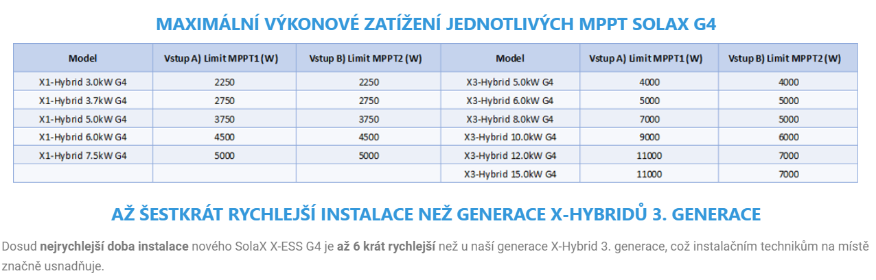 Nová vlastnost SOLAX G4 potěší hlavně instalatéry technologií. Kromě rychlé montáže do 30 min., střídač pro spuštění a prvotní nastavení nevyžaduje síť ani slunce. Vnitřním napětím z baterky lze systém kompletně oživit a tak flexibilně naplánovat práci.